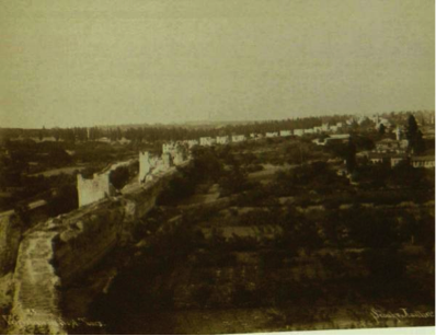 In the 1890s, the photographer Sebah took a photograph of the Yedikule gardens showing the precursor to what would today be the invasion of modernization.